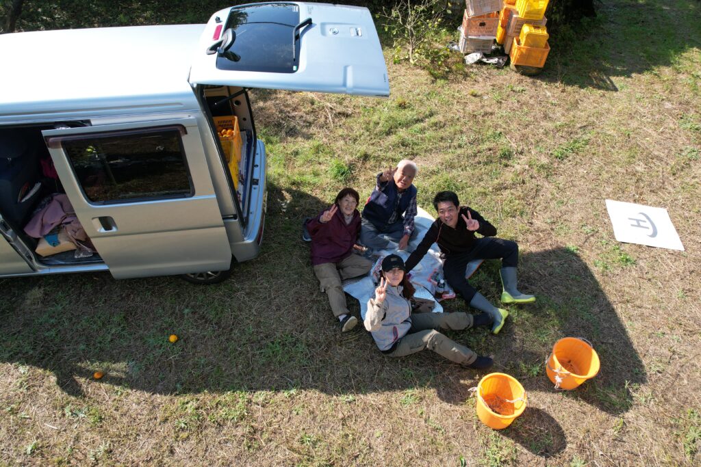 途中、お客様が用意してくださった手作りのお弁当と、もぎたてのミカンをごちそうになりながら談笑。よく笑う夫婦で楽しい昼食でした。