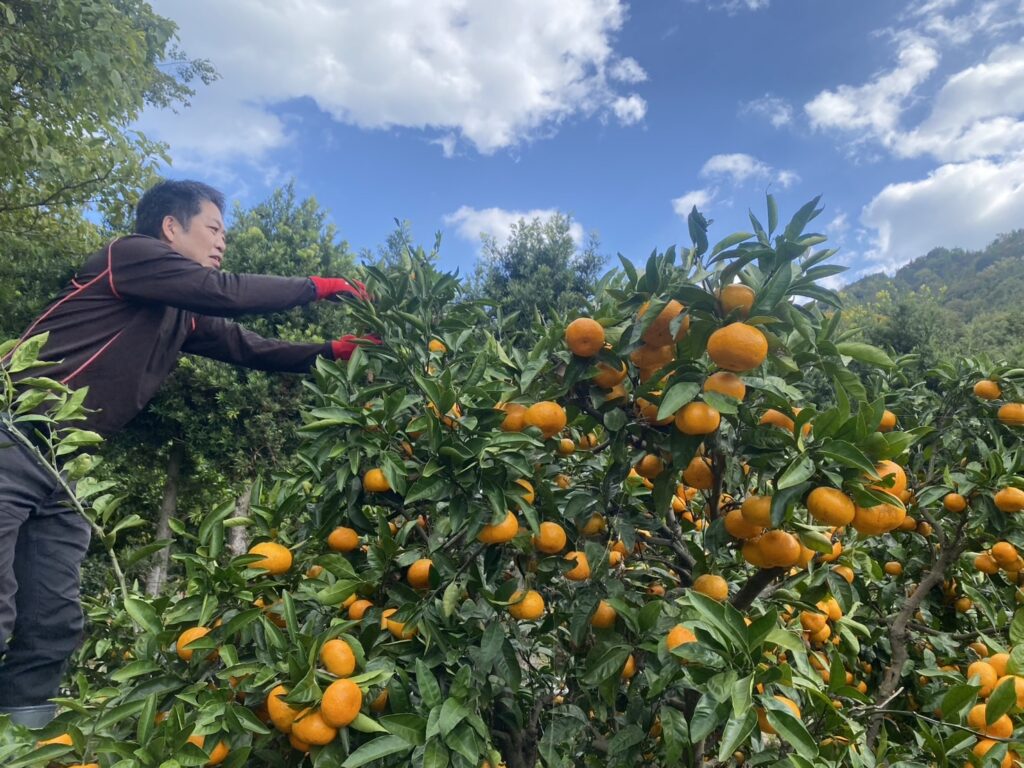 脚立に上がってミカンを一つ一つ収穫する作業は、見た目以上にハード。